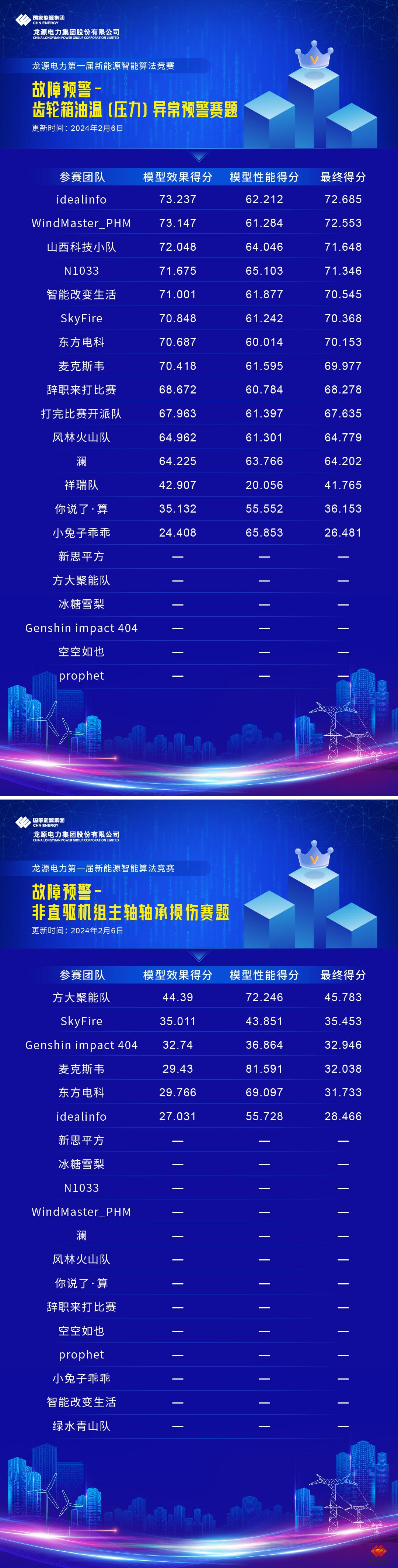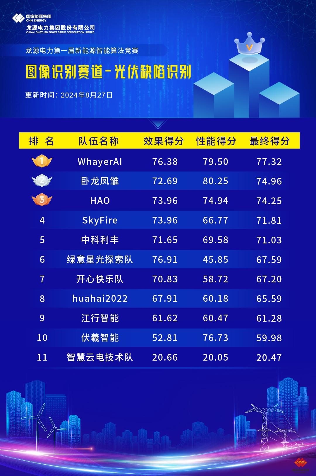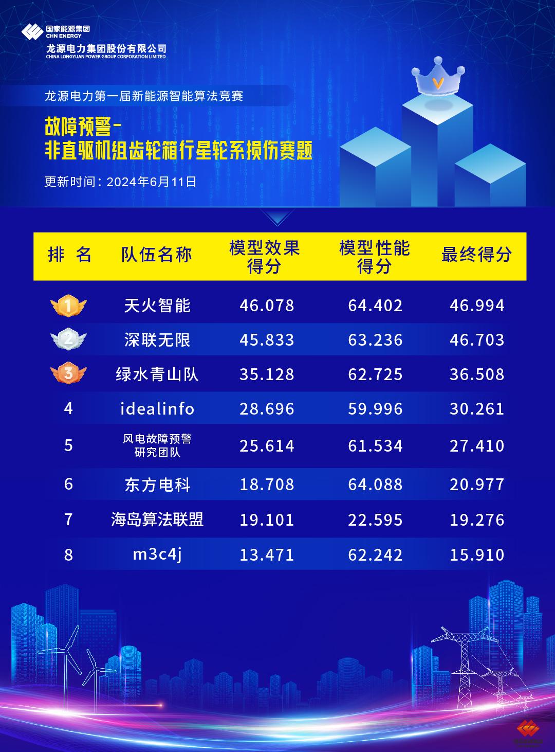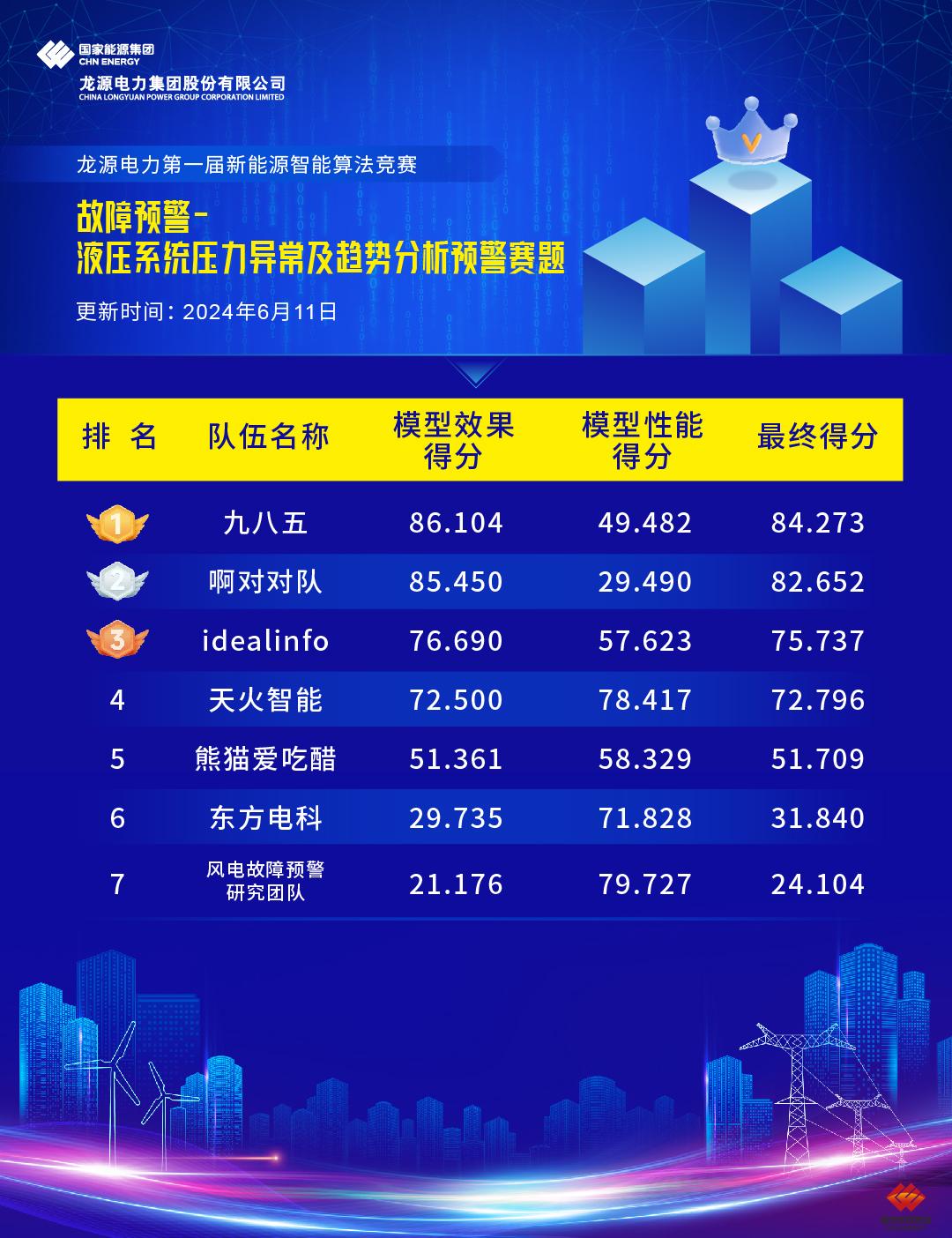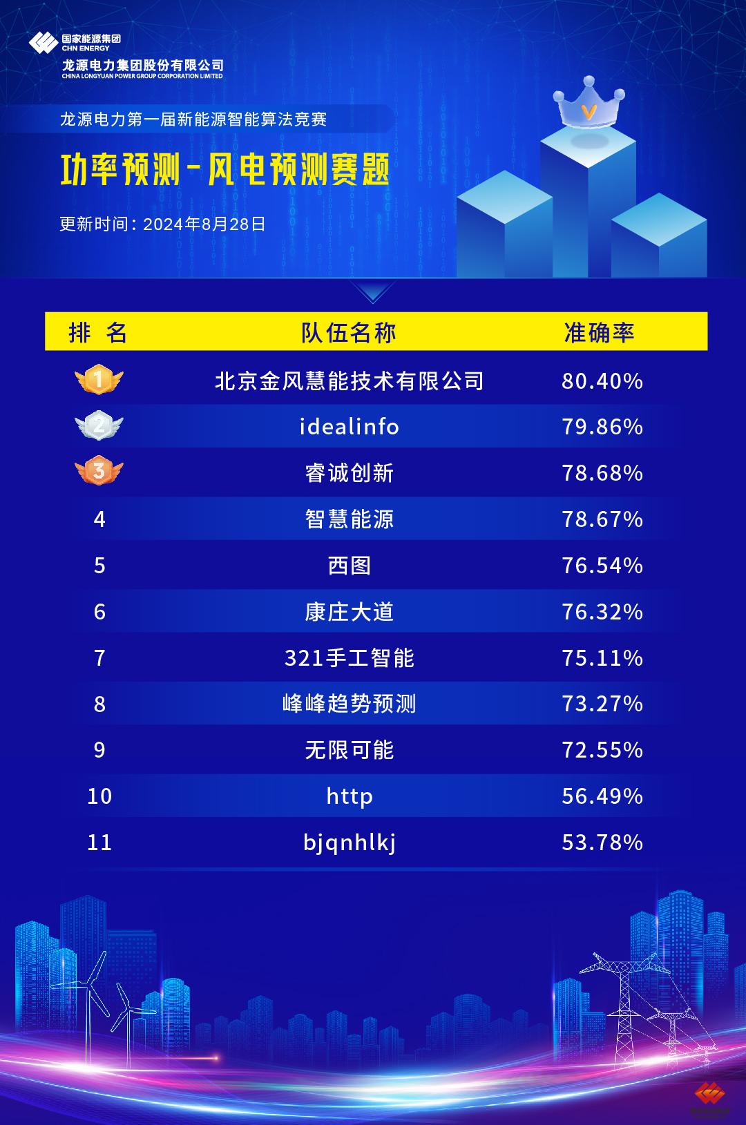 J9集团官方网站电力第一届新能源智能算法竞赛成绩榜